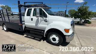 2006 Ford F650 12' Flatbed, 5.9L Cummins Turbo Diesel Engine, 260 Horsepower, 5 Speed Automatic Transmission, 127,042 Miles, 24,040 GVWR (No CDL Required), 8,160lb Front Axle, 15,880lb Rear Axle, 203" Wheelbase, 106" Cab to Axle, Air Suspension, 245/70R19.5 Tires, Steel Wheels, Air Brakes, No DEF No DPF Not California Compliant, 12' Long x 96" Wide x 42" Tall Stake Panels, MBB Interlift 3,300lb Liftgate, 48" Long x 80" Wide Liftgate, Hide Away 5th Wheel Plate, 3" Receiver Hitch, Electric Trailer Brake Controller, 2 Underbody Storage Boxes, A/C, Tilt Steering Wheel, Cruise Control, AM/FM Radio, Power Windows, Manual Mirrors, Power Locks, Air Ride Driver Seat, Vinyl Seating for 6. This Flatbed Truck is Available For Sale @ DTI Trucks On 44th Ave In Wheat Ridge, Colorado. For More information call our truck sales team at 303-524-3820. FINANCING OPTIONS AVAILABLE. We Pick Up Out Of State Customers From The Airport!